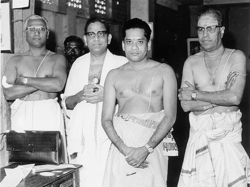 In a temple. Violonist Y.N.Sharma (Father of Music Director Mani Sharma, Ghantasala and K.V.Mahadevan(4th), 3rd not known)