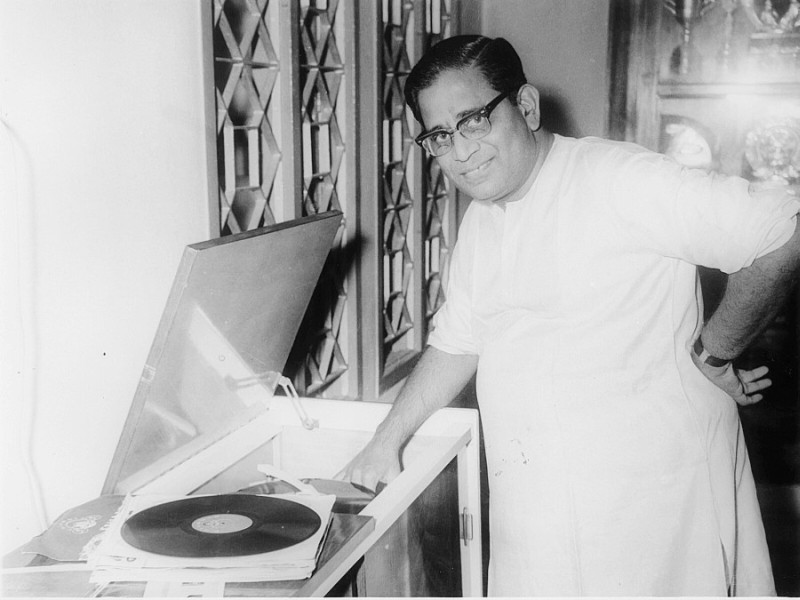 Ghantasala listening to his own songs in radiogram.