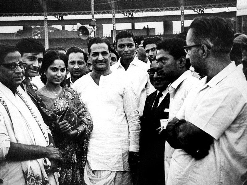 Silver jubilee celebrations of Ghantasala at Hyderabad on Feb 1st,1970. GH, Devanand (Hindi actor), actress Waheeda Rehman, actor T.L.Kantha Rao, NTR, etc. More than 30,000 people attended the function celebrated at Lal Bahadur stadium, Hyderabad.