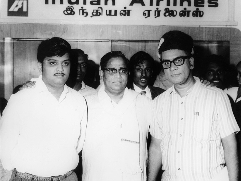 Send off by singers S.P.Balu and P.B.Srinivas to Ghantasala on his trip to USA at Madras airport.